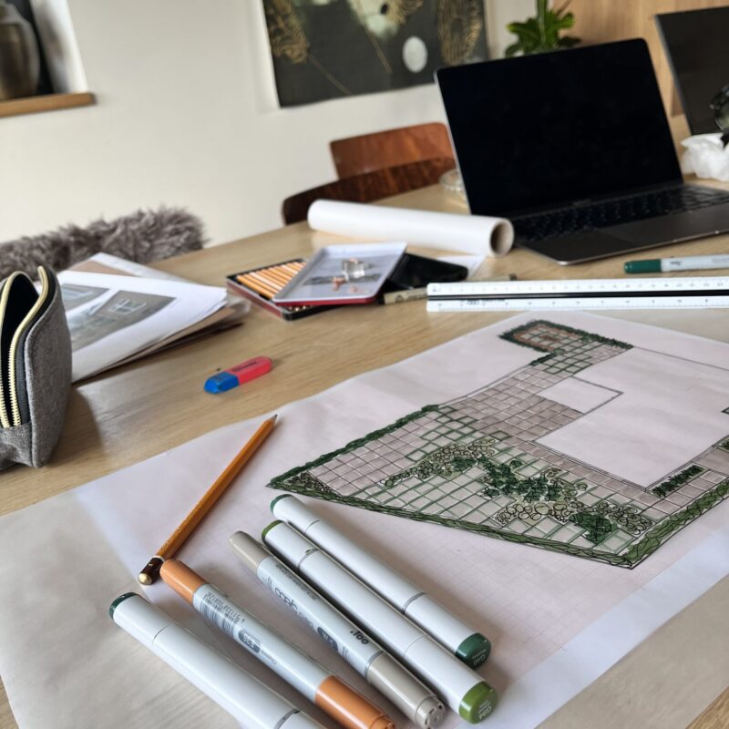 Een tuin ontwerpen is een enorm leuk proces. De informatie van de intake is de start van dit proces. De studio doet daarna verder zelf nog onderzoek naar allerlei zaken.